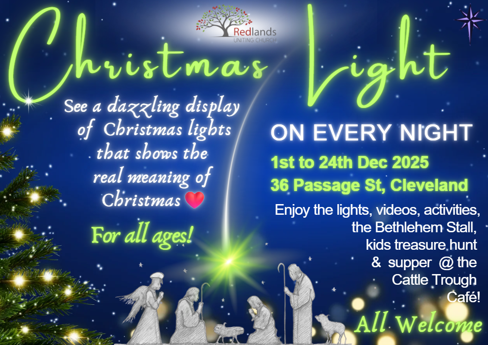 Please enjoy seeing the lights, watching the videos, doing the activities, browsing the Bethlehem Stall (lots of handmade presents to buy) and seeing the kids have fun chasing the lights on the open grassed area.